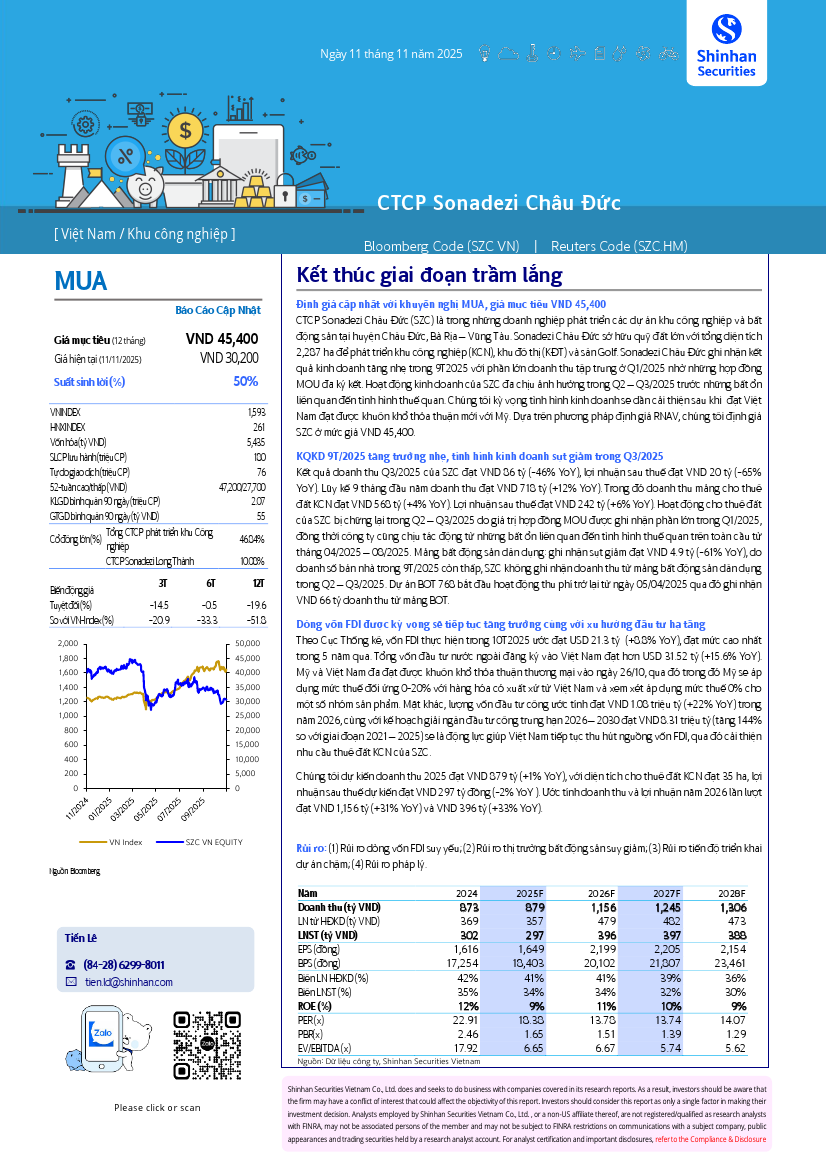 SZC: Khuyến nghị MUA với giá mục tiêu 45,400 đồng/cổ phiếuNguồn: SSV Tải về 11/11/2025 |