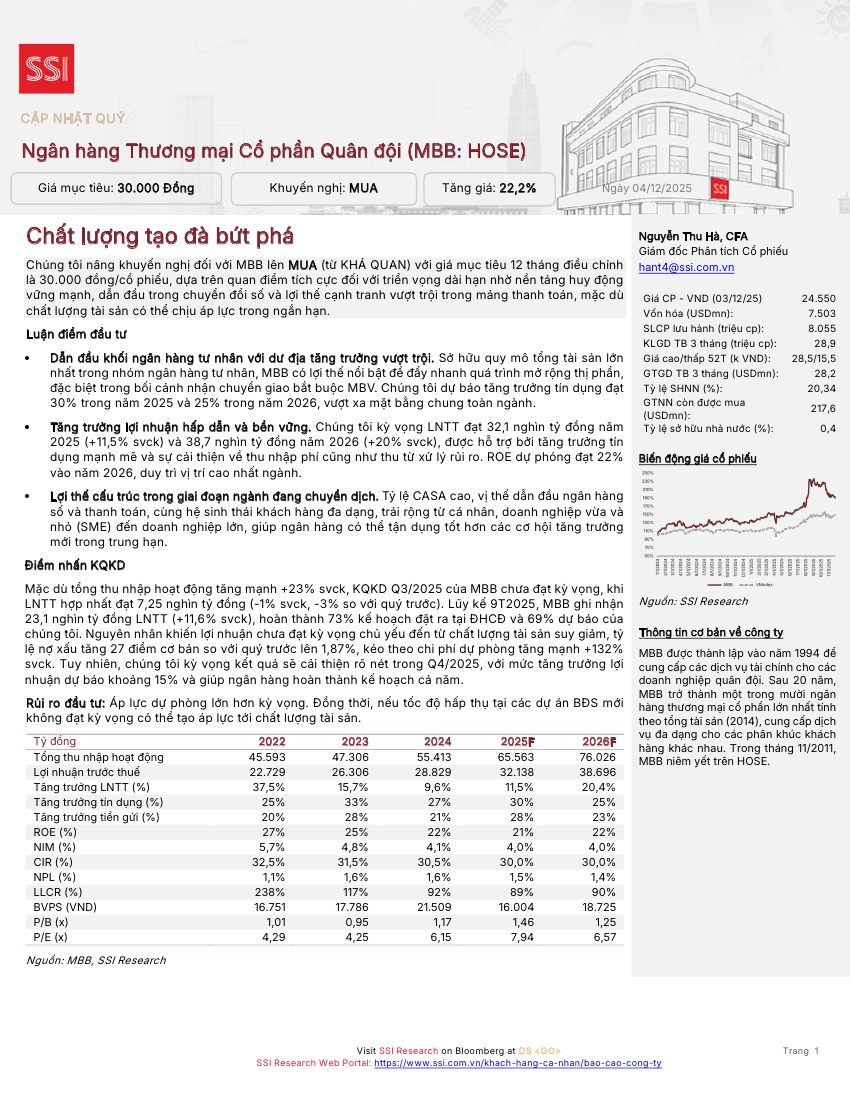 MBB: Khuyến nghị MUA với giá mục tiêu 30,000 đồng/cổ phiếuNguồn: SSI Tải về 04/12/2025 |