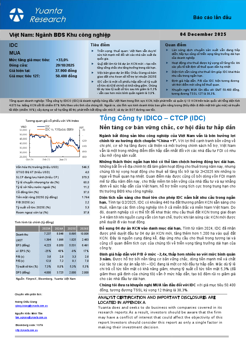 IDC: Nền tảng cơ bản vững chắc, cơ hội đầu tư hấp dẫnNguồn: YSVN Tải về 04/12/2025 |