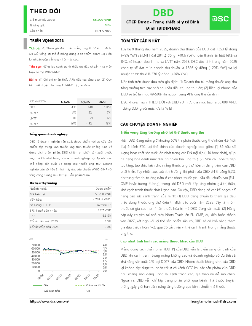 DBD: Khuyến nghị THEO DÕI với giá mục tiêu 56,000 đồng/cổ phiếuNguồn: DSC Tải về 04/12/2025 |